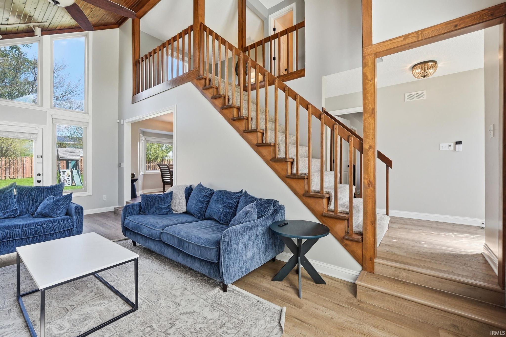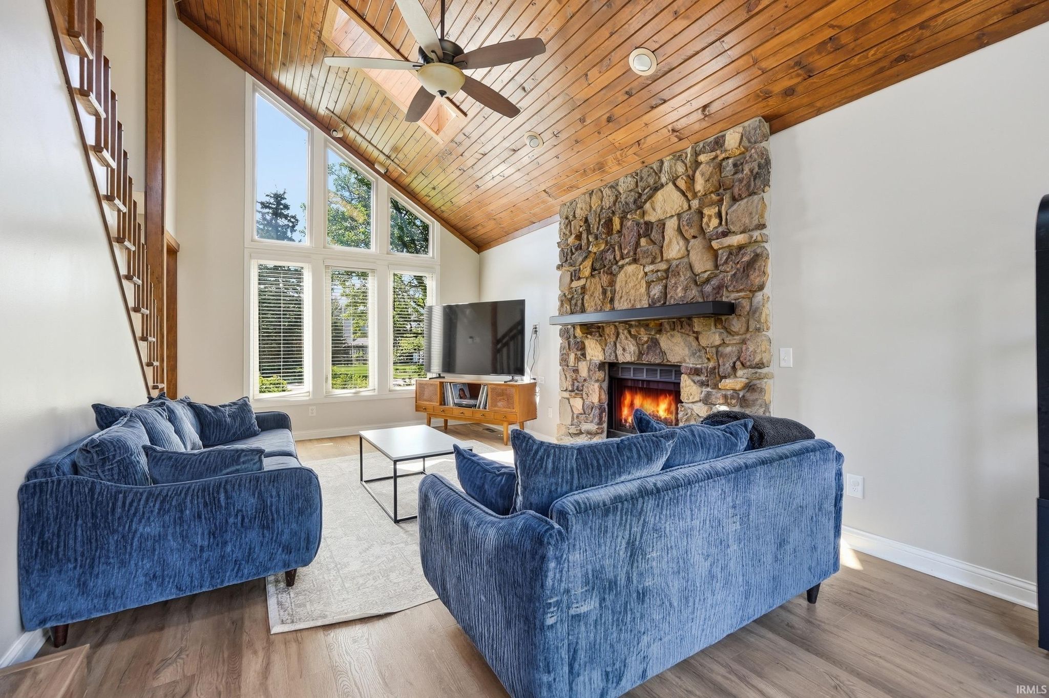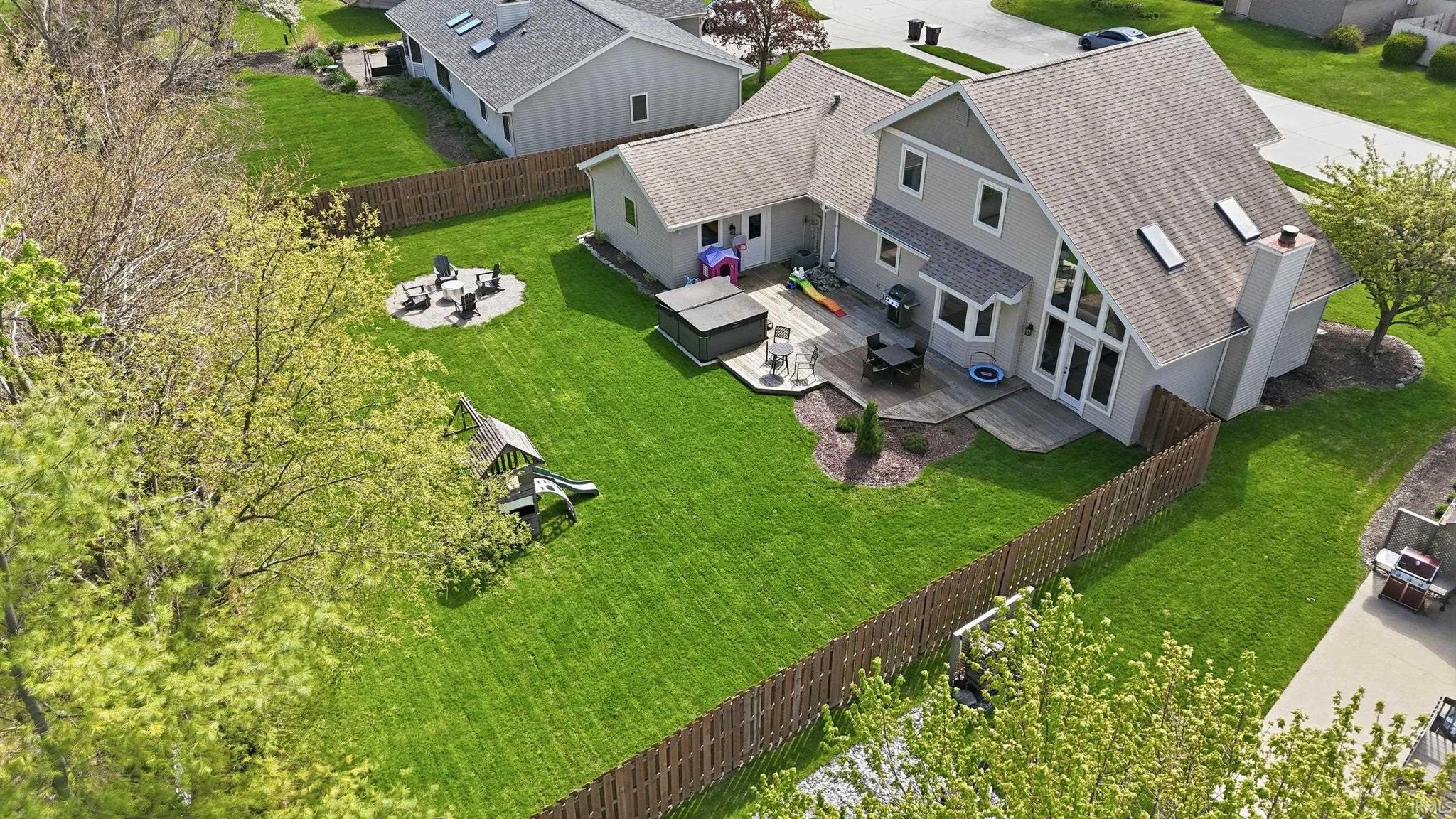 Beautiful 3 bed, 2.5 bath home featuring a spacious main-level primary suite, tandem 4-car garage, and finished basement. The open layout showcases soaring wood ceilings, a stone fireplace, and abundant natural light. Enjoy the large fenced backyard, perfect for entertaining. Located in a quiet, central area near parks, trails, shopping, dining, Parkview Hospital, and I-69. HVAC system professionally cleaned and serviced and Roof is 6 years old.