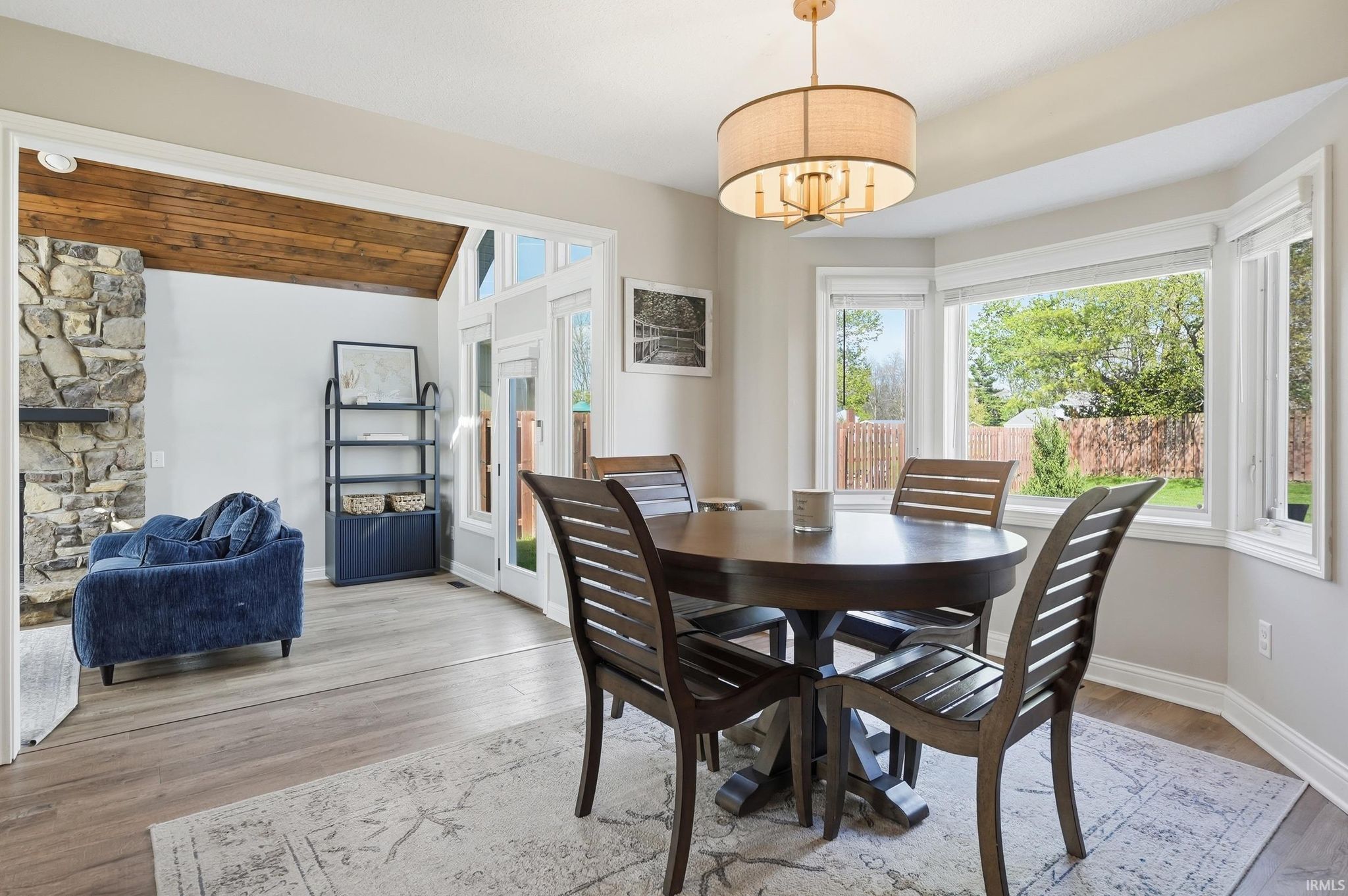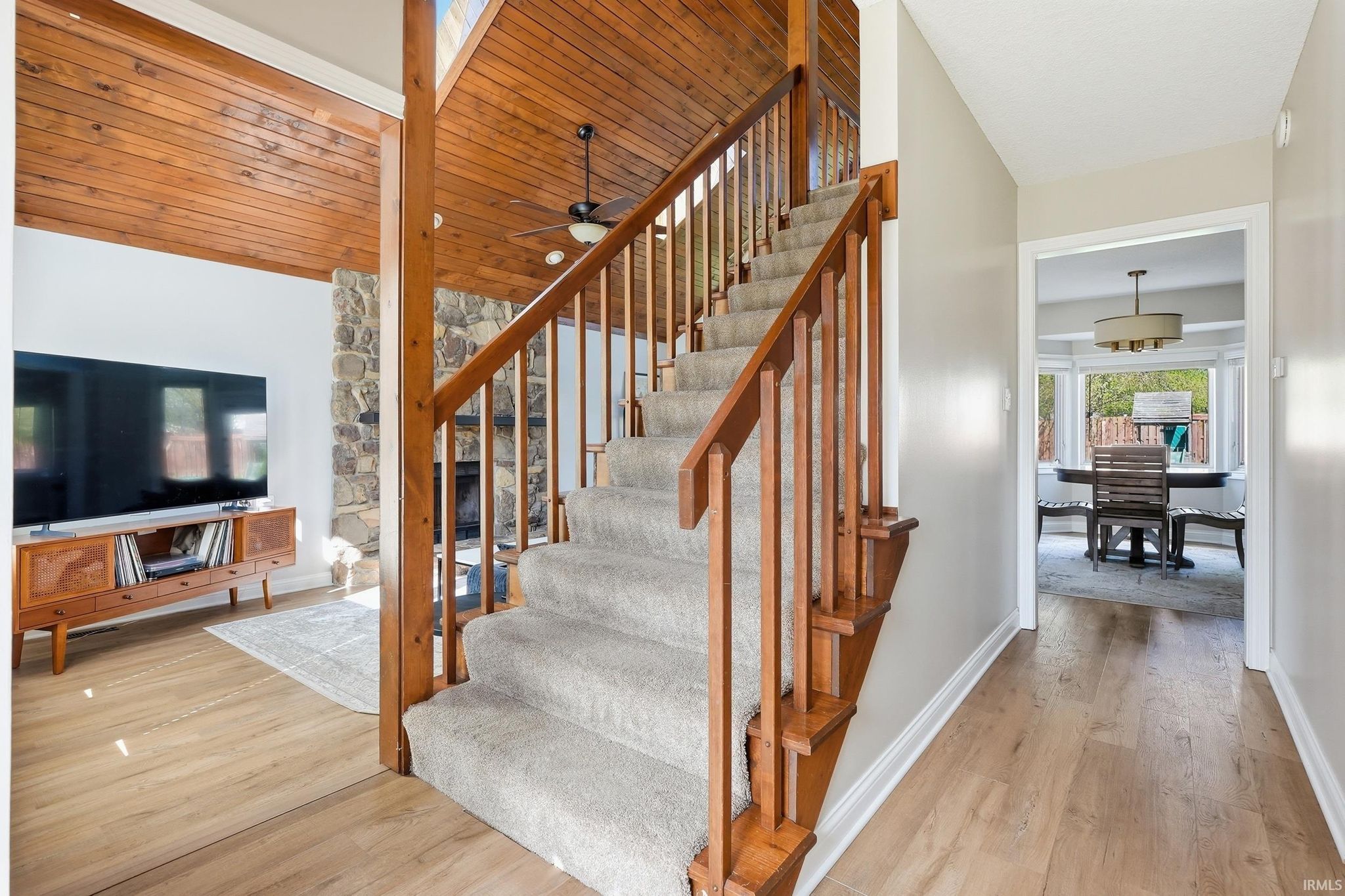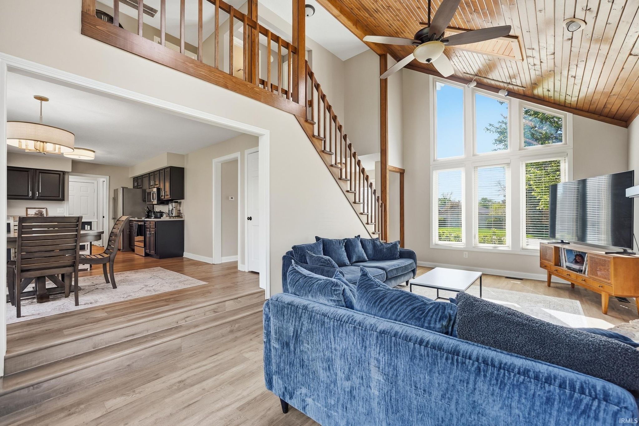 Beautiful 3 bed, 2.5 bath home featuring a spacious main-level primary suite, tandem 4-car garage, and finished basement. The open layout showcases soaring wood ceilings, a stone fireplace, and abundant natural light. Enjoy the large fenced backyard, perfect for entertaining. Located in a quiet, central area near parks, trails, shopping, dining, Parkview Hospital, and I-69. HVAC system professionally cleaned and serviced and Roof is 6 years old.