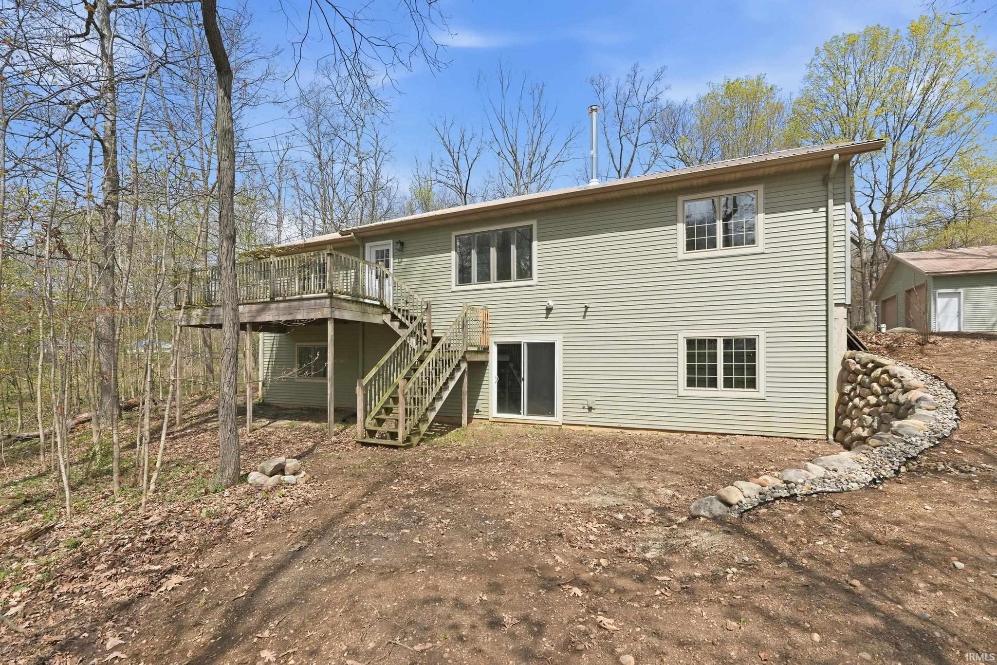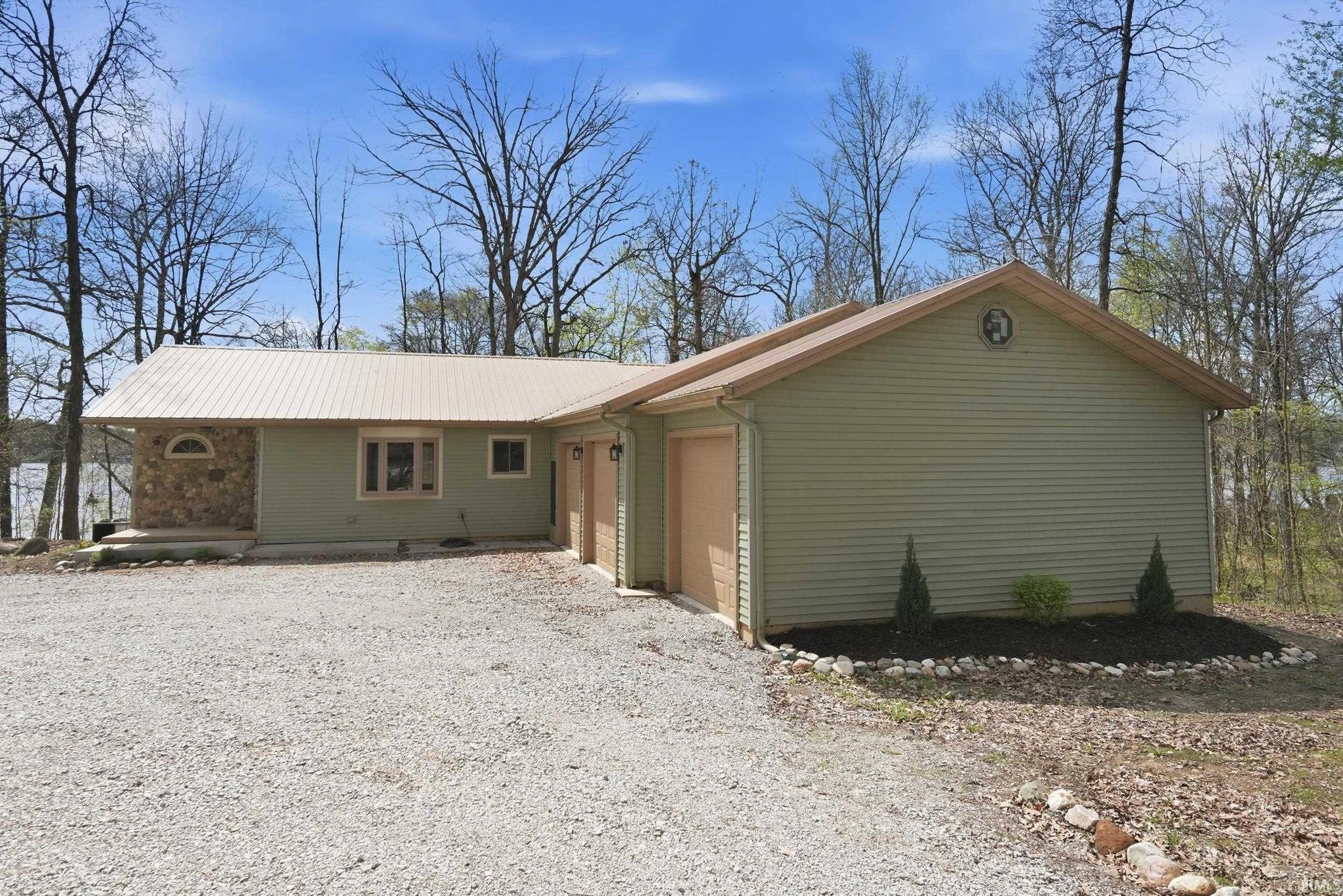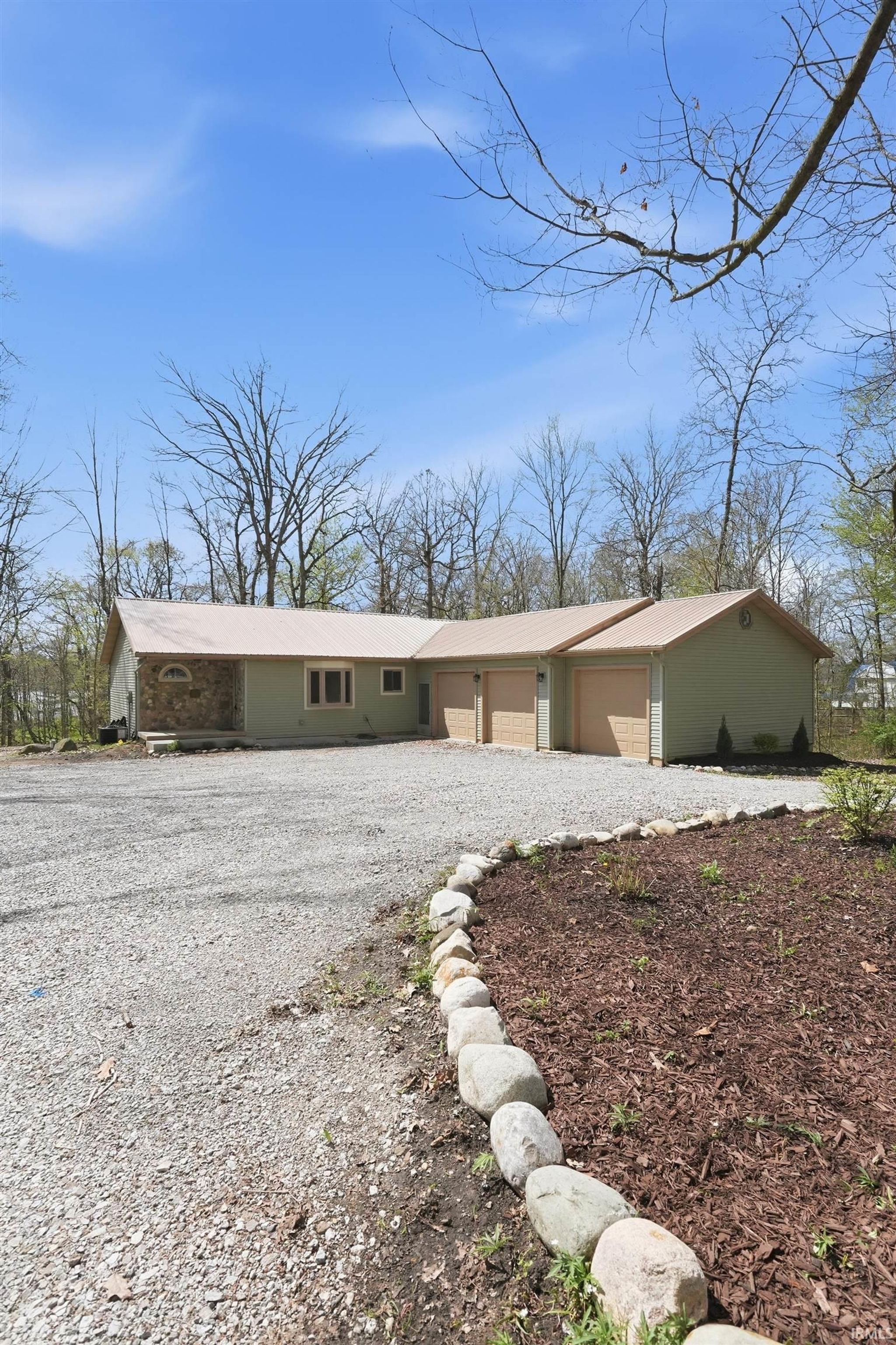 Welcome to 1080 North Shore Drive in Rome City on Sylvan Lake, a stunning 669 acre all sports lake known for its scenic shoreline, island views, and destinations like Boy Scout Island with public walking trails. 4 HUGE BEDROOMS, 3 ENORMOUS AND NEW BATHROOMS including two en suites, TWO LIVING ROOMS, all set on just under an acre of wooded ground with DIRECT SKI LAKEFRONT ACCESS, a 3 car attached garage, and a 30 x 40 detached pole building. This beautifully updated ranch with a full finished walkout basement offers the kind of space, privacy, and waterfront lifestyle that is hard to find, sitting on approximately .88 acres with 141.45 feet of lake frontage that is planned to be dredged for even deeper water access. Step inside & you immediately feel the openness of the layout, with a bright main level featuring rich cherry hardwood floors, a spacious living area with a new wood burning stove with new tile surround add warmth and character for AFTER those cold winter ice fishing days. The kitchen is a true centerpiece with cherry cabinetry, brand new quartz countertops, an updated backsplash, and plenty of room to entertain & the mobile island in kitchen can be moved or removed entirely. The home offers four oversized bedrooms, two on the main level and two in the lower level, three with walk in closets, along with three large bathrooms featuring marble topped vanities and marble flooring. The walkout lower level expands your living space in all the right ways with a second living room, two HUGE brand new bedrooms, all new finishes, and a brand new wet bar that is perfect for hosting or creating a private retreat for guests or dedicate space for the kids. Brand new carpet, updated tile flooring, and fresh paint throughout make the entire home feel clean and move in ready. Beyond the interior, the setting is just as impressive. The wooded lot provides a private feel while still offering a gentle slope down to the water’s edge, giving you both usability and space between neighbors. Enjoy the newly added stone retaining wall along the waterfront patio area or spend evenings on the elevated deck, both perfect for relaxing or entertaining on the lakeside. A three car attached garage and a 30 x 40 detached pole building give you all the storage you need for lake toys, equipment, or even RV space. This is more than just a home, it is a full lake lifestyle with room to spread out, entertain, and enjoy everything Sylvan Lake has to offer.