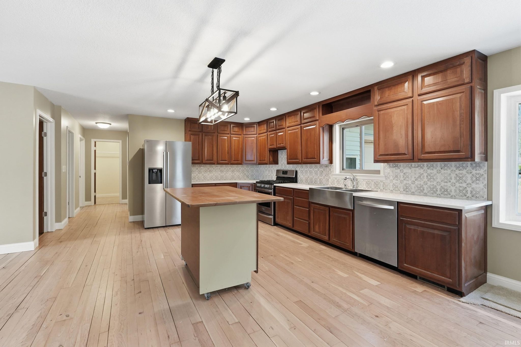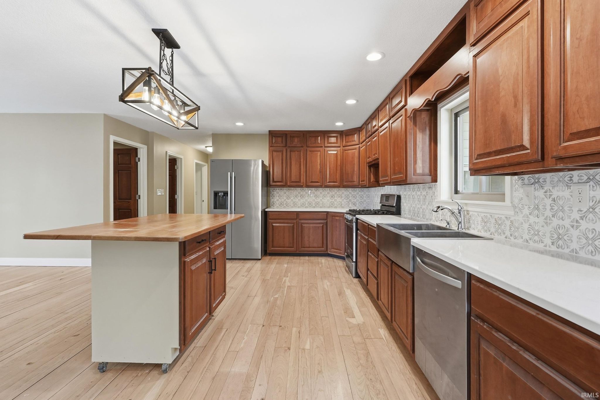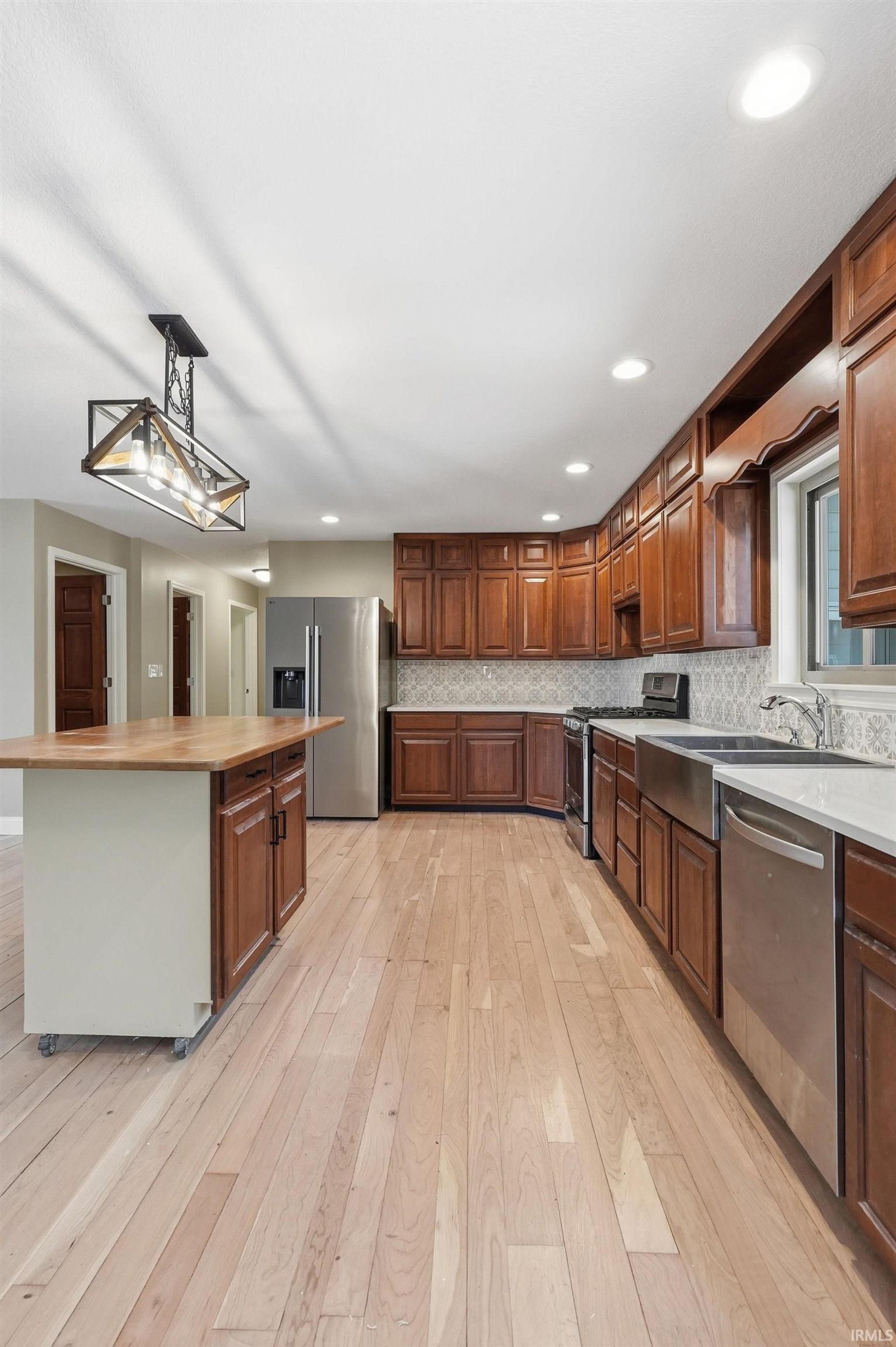 Welcome to 1080 North Shore Drive in Rome City on Sylvan Lake, a stunning 669 acre all sports lake known for its scenic shoreline, island views, and destinations like Boy Scout Island with public walking trails. 4 HUGE BEDROOMS, 3 ENORMOUS AND NEW BATHROOMS including two en suites, TWO LIVING ROOMS, all set on just under an acre of wooded ground with DIRECT SKI LAKEFRONT ACCESS, a 3 car attached garage, and a 30 x 40 detached pole building. This beautifully updated ranch with a full finished walkout basement offers the kind of space, privacy, and waterfront lifestyle that is hard to find, sitting on approximately .88 acres with 141.45 feet of lake frontage that is planned to be dredged for even deeper water access. Step inside & you immediately feel the openness of the layout, with a bright main level featuring rich cherry hardwood floors, a spacious living area with a new wood burning stove with new tile surround add warmth and character for AFTER those cold winter ice fishing days. The kitchen is a true centerpiece with cherry cabinetry, brand new quartz countertops, an updated backsplash, and plenty of room to entertain & the mobile island in kitchen can be moved or removed entirely. The home offers four oversized bedrooms, two on the main level and two in the lower level, three with walk in closets, along with three large bathrooms featuring marble topped vanities and marble flooring. The walkout lower level expands your living space in all the right ways with a second living room, two HUGE brand new bedrooms, all new finishes, and a brand new wet bar that is perfect for hosting or creating a private retreat for guests or dedicate space for the kids. Brand new carpet, updated tile flooring, and fresh paint throughout make the entire home feel clean and move in ready. Beyond the interior, the setting is just as impressive. The wooded lot provides a private feel while still offering a gentle slope down to the water’s edge, giving you both usability and space between neighbors. Enjoy the newly added stone retaining wall along the waterfront patio area or spend evenings on the elevated deck, both perfect for relaxing or entertaining on the lakeside. A three car attached garage and a 30 x 40 detached pole building give you all the storage you need for lake toys, equipment, or even RV space. This is more than just a home, it is a full lake lifestyle with room to spread out, entertain, and enjoy everything Sylvan Lake has to offer.