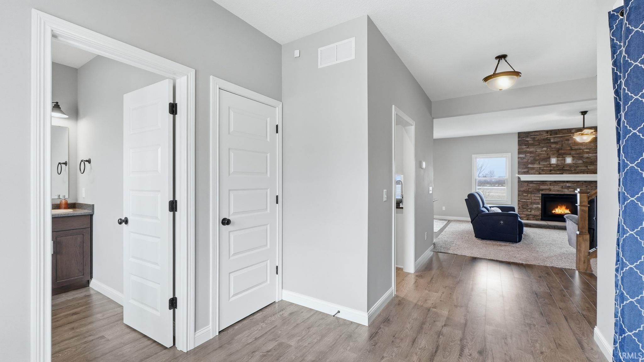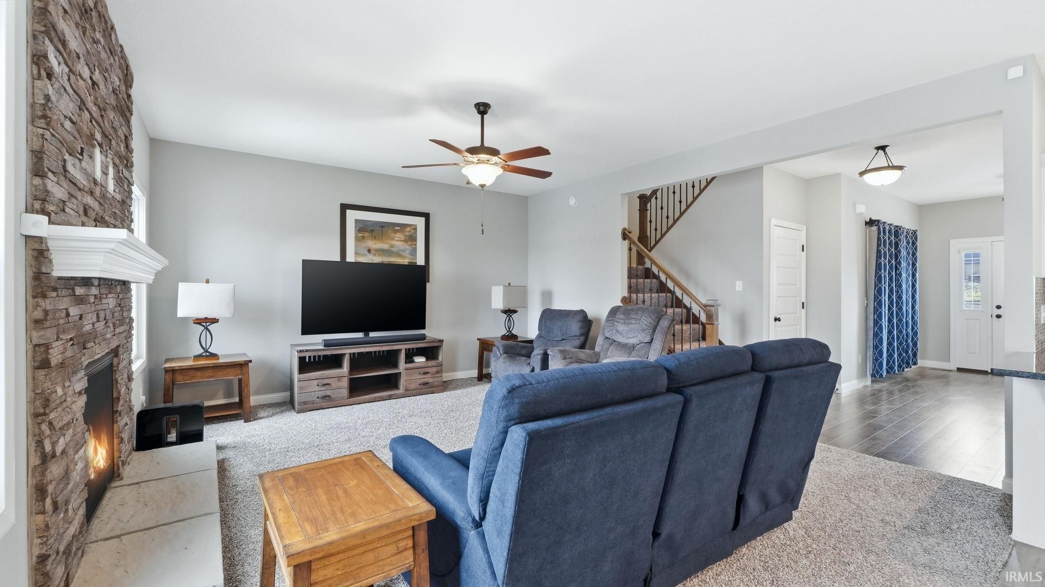 Located in the desirable Prairie Meadows subdivision, this spacious four-bedroom home features a main-floor primary suite with a cathedral ceiling, creating a light and airy private retreat. The primary bath is complemented by generous closet space, while three additional bedrooms upstairs provide flexibility for family or guests. The main level also includes a dedicated office/den, ideal for remote work or study. The open-concept family room flows seamlessly into the eat-in kitchen, complete with a walk-in pantry and abundant storage — perfect for everyday living and entertaining alike. Upstairs, a second living space offers the perfect gathering area near the additional bedrooms, giving room to spread out. Step outside to enjoy the beautiful stone patio and relaxing hot tub, and a home generator provides added peace of mind. The heated three-car garage offers ample storage, including attic space for seasonal items. With its functional layout, generous storage throughout, and unbeatable SW Allen County location, this home truly offers comfort, convenience, and space to grow.
