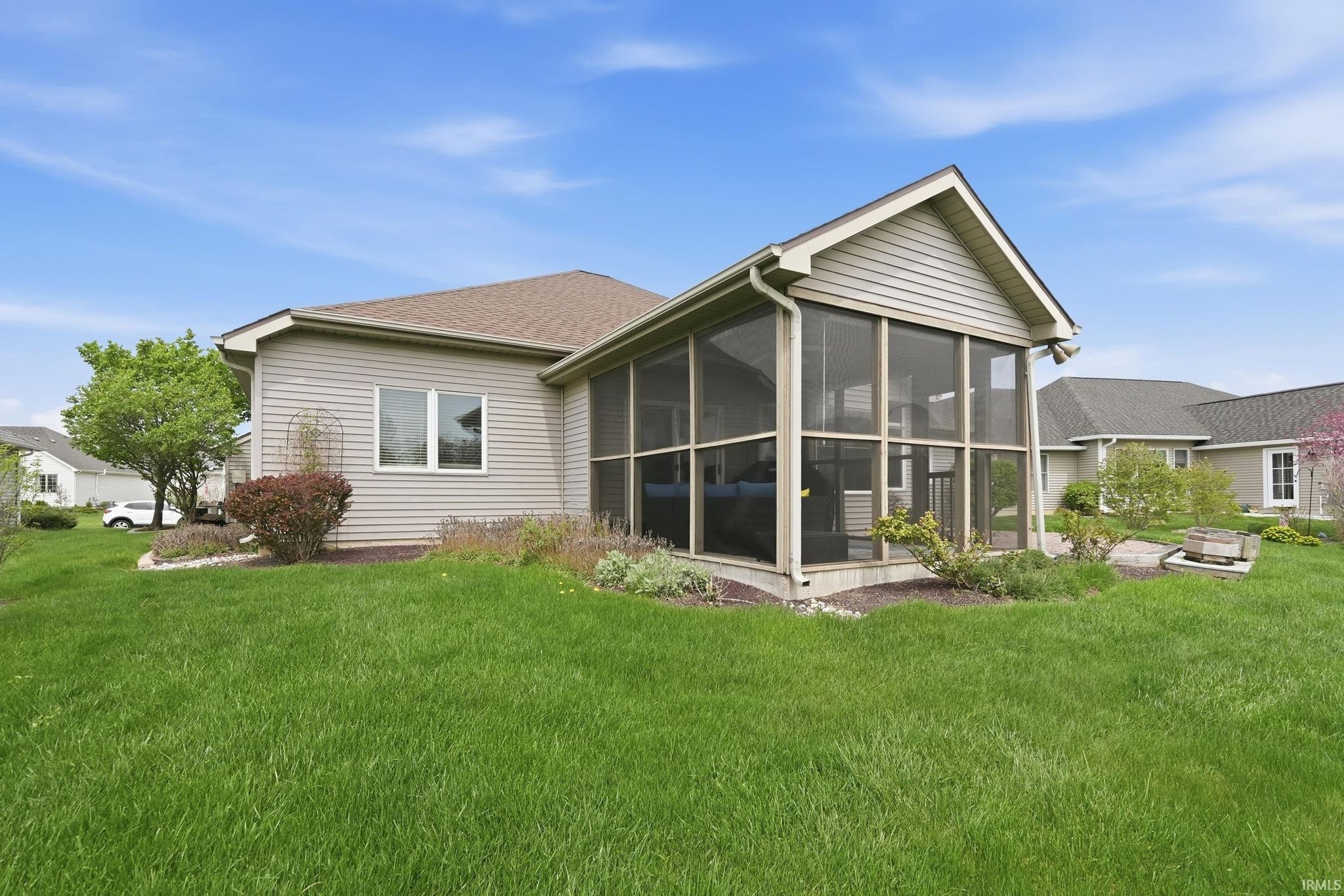Welcome to Sorrento, a desirable community within the highly sought-after Northwest Allen County School District. Conveniently located near Parkview Regional Medical Center, shopping, dining, and easy access to I-69, this well-maintained, one-owner ranch offers a great combination of comfort, space, and location. Featuring 3 bedrooms, 2 full bathrooms, and 2,011 square feet of living space on a slab, the home offers a functional split-bedroom floor plan and an open, inviting layout. The great room features elevated ceilings, abundant natural light, and a double-sided fireplace that connects to a cozy hearth area just off the kitchen. The kitchen flows seamlessly into the breakfast nook and hearth space, creating a natural gathering area, while a formal dining room off the foyer adds flexibility for entertaining or additional living space. The private primary suite is tucked behind the kitchen and includes a spacious bedroom, barn door entry to the en-suite bath, double vanities, a walk-in shower, and a large walk-in closet. Bedrooms two and three are located on the opposite side of the home and share a full bath. Enjoy outdoor living with a screened-in porch and an open patio with paver accents. The nicely landscaped yard includes an irrigation system and adds to the home’s curb appeal. Additional highlights include an oversized two-car garage, a newer roof (complete tear-off in 2024), and included kitchen appliances, along with the washer, dryer, and additional refrigerator. Offered at $369,900, this is a great opportunity to own a well-cared-for home in Sorrento.