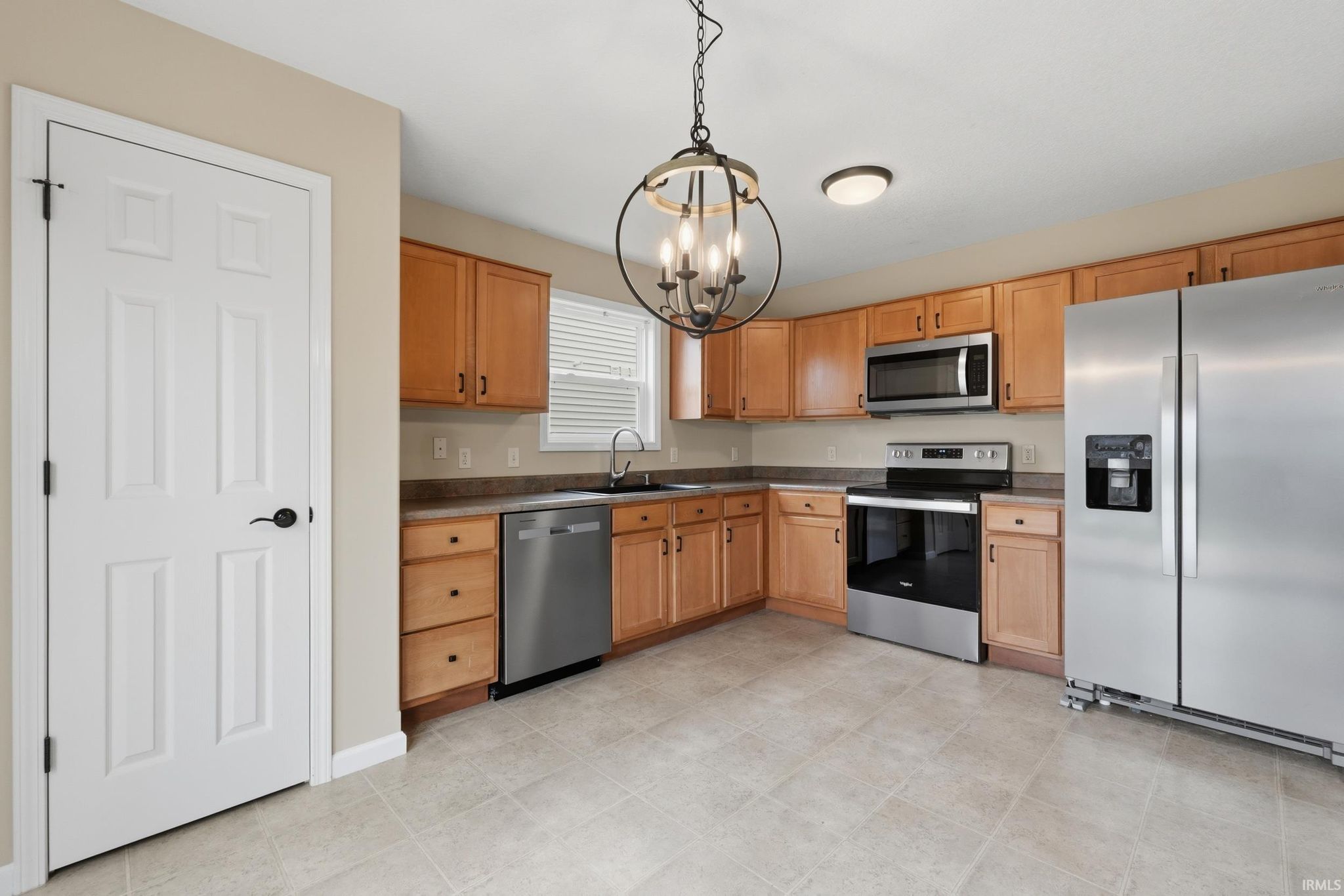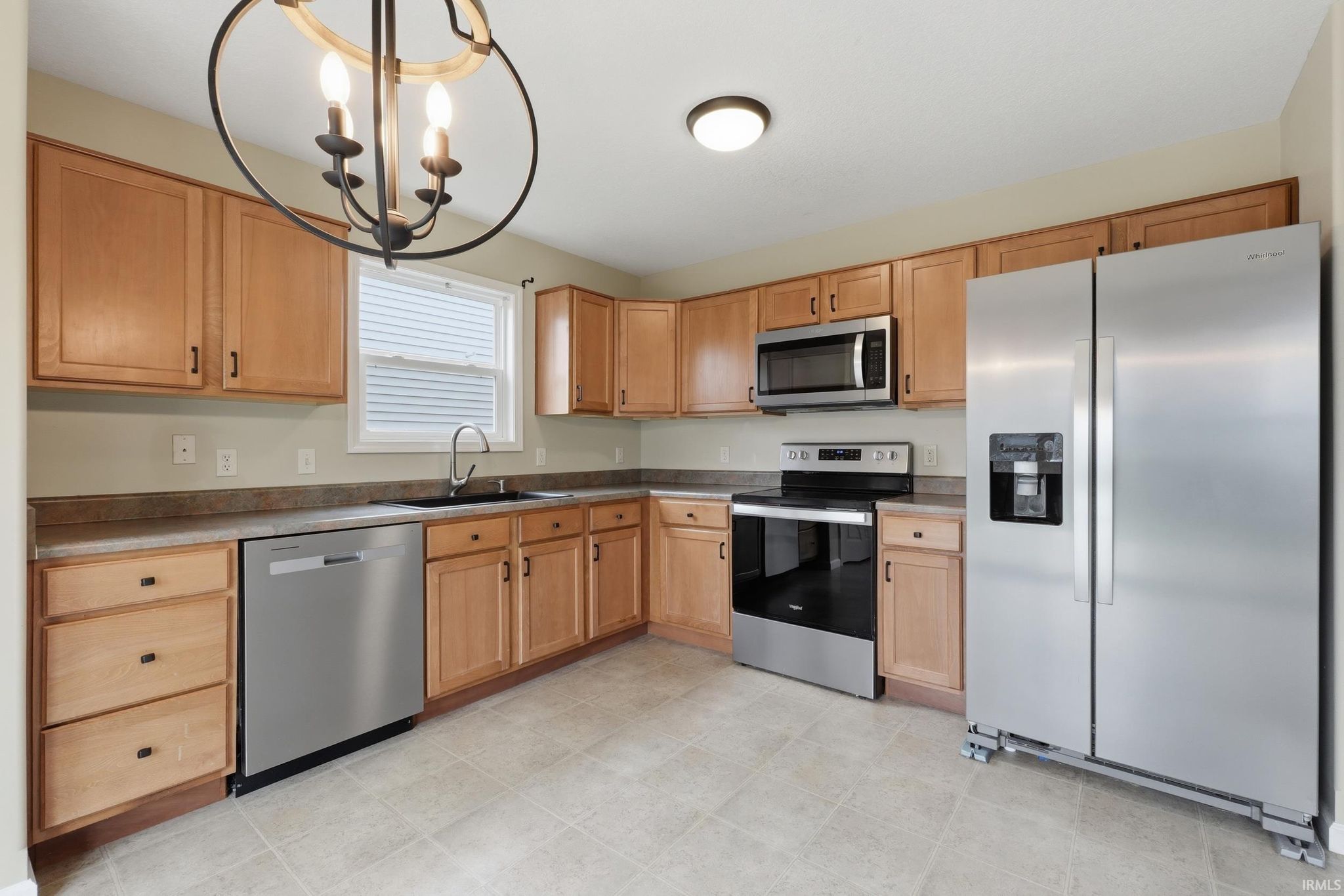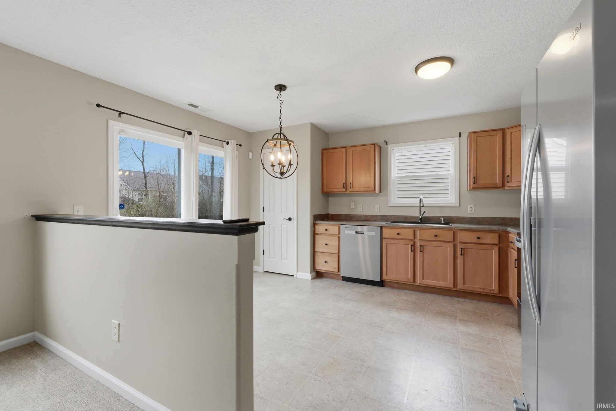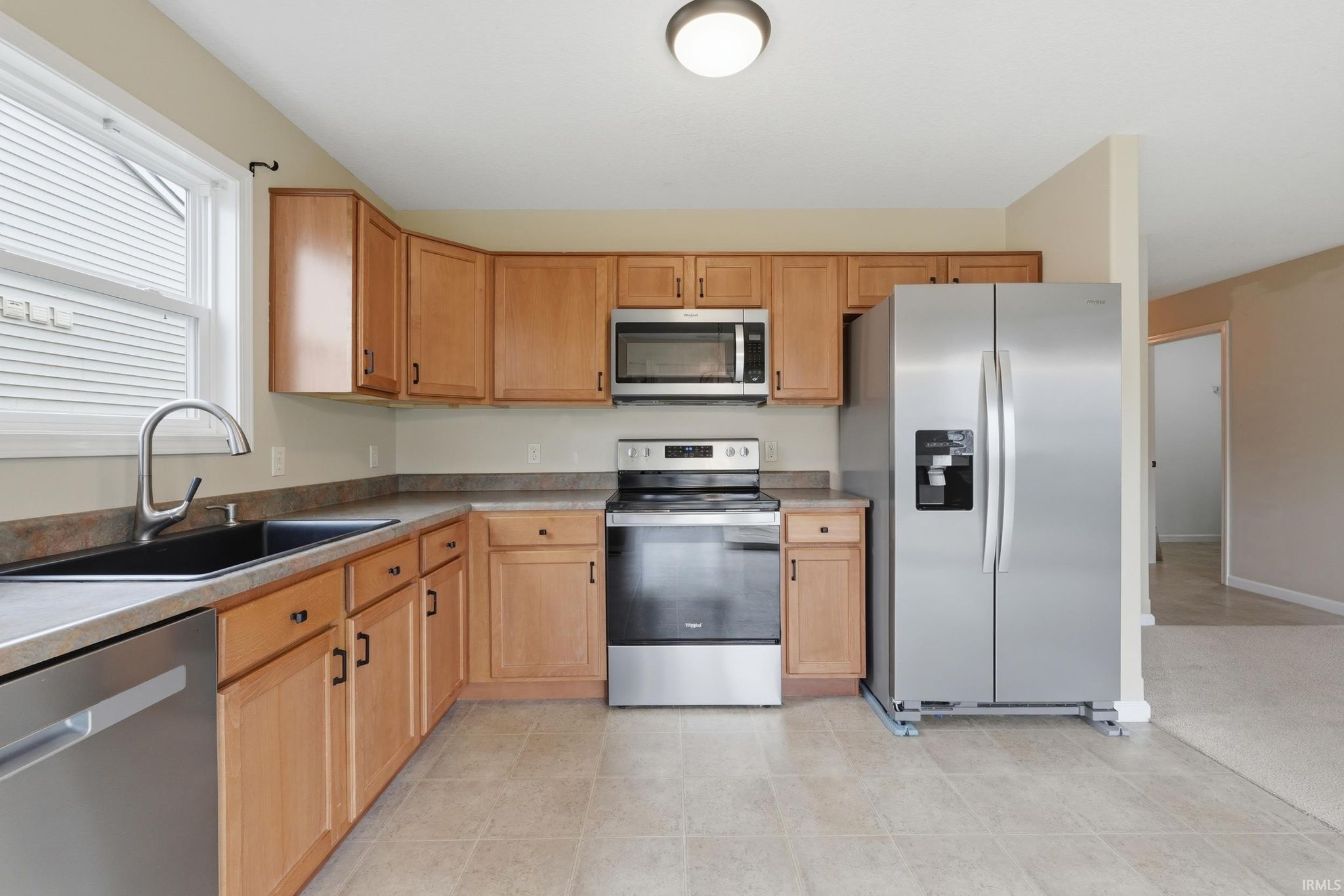 Welcome to this 3-bedroom, 2-bath ranch home in Ravens Cove on Fort Wayne’s northwest side, featuring a desirable split-bedroom floor plan and open-concept layout that offers functional, everyday livability. The main living area is filled with natural light and flows seamlessly into the kitchen and dining spaces, creating a comfortable and connected feel. The kitchen features a full appliance package with newer stainless steel appliances, along with a newer sink, updated light fixtures, and ample cabinet and counter space. The generously sized primary suite is located just off the great room and includes a walk-in closet and private en-suite bath, while bedrooms two and three are positioned off the foyer, offering separation within the layout, with one bedroom featuring updated flooring. A conveniently located laundry area and mechanical space sit just off the attached 2-car garage. Sliding glass doors lead to the fully fenced backyard with patio—ideal for pets, play, or relaxing outdoors. Additional updates include a newer HVAC system installed in 2025. This home offers a great opportunity for a buyer to make it their own and add personal touches over time. Conveniently located near shopping, dining, and everyday amenities, this home is ready for its next owner.
