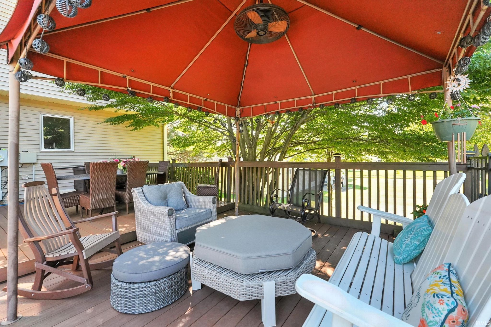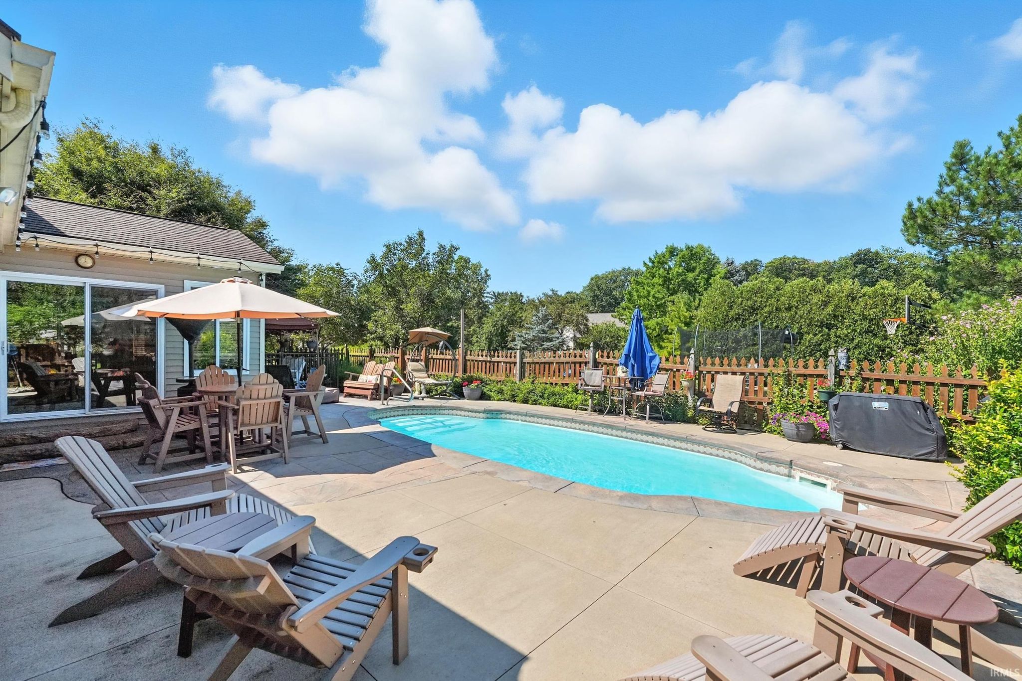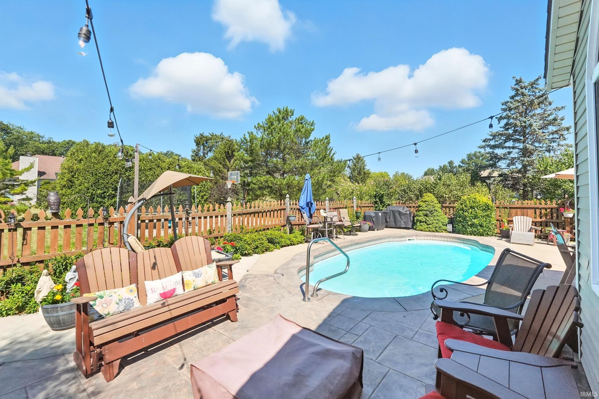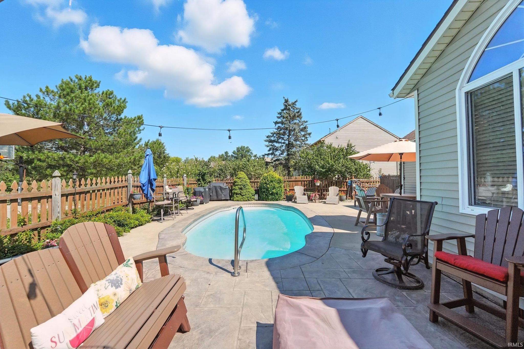 Start Showing Date: 5/2/2026 Awesome two story on daylight finished basement with a 3 car garage plus a fabulous backyard that features an in-ground pool and a basketball court. The main level has tremendous layout to provide space for entertaining and daily living. The kitchen is 14x11 plus a 13x12 nook with a sunroom, a 20x15 living room that has a gas log fireplace bookcases vaulted ceiling and ceiling fan. The pantry closet and additional closet space in the laundry room will provide all the food and appliance storage you need! Two glass doors allow the office/dining room to be private. Upstairs you will find the master suite complete with walk-in closet and en suite bathroom. The other bedrooms are spacious and have roomy closets. The lower level has space for recreating / play / workout / storage. The backyard is an oasis with a complete pool deck, pool, firepit, some shade, a fence, and a basketball pad and basketball goal. The location puts you minutes to the hospitals, schools, I-69, and downtown.