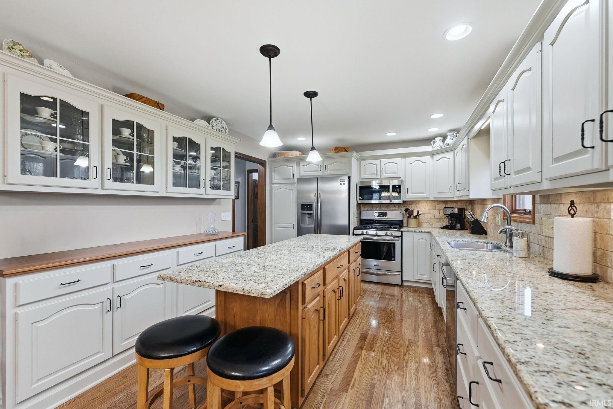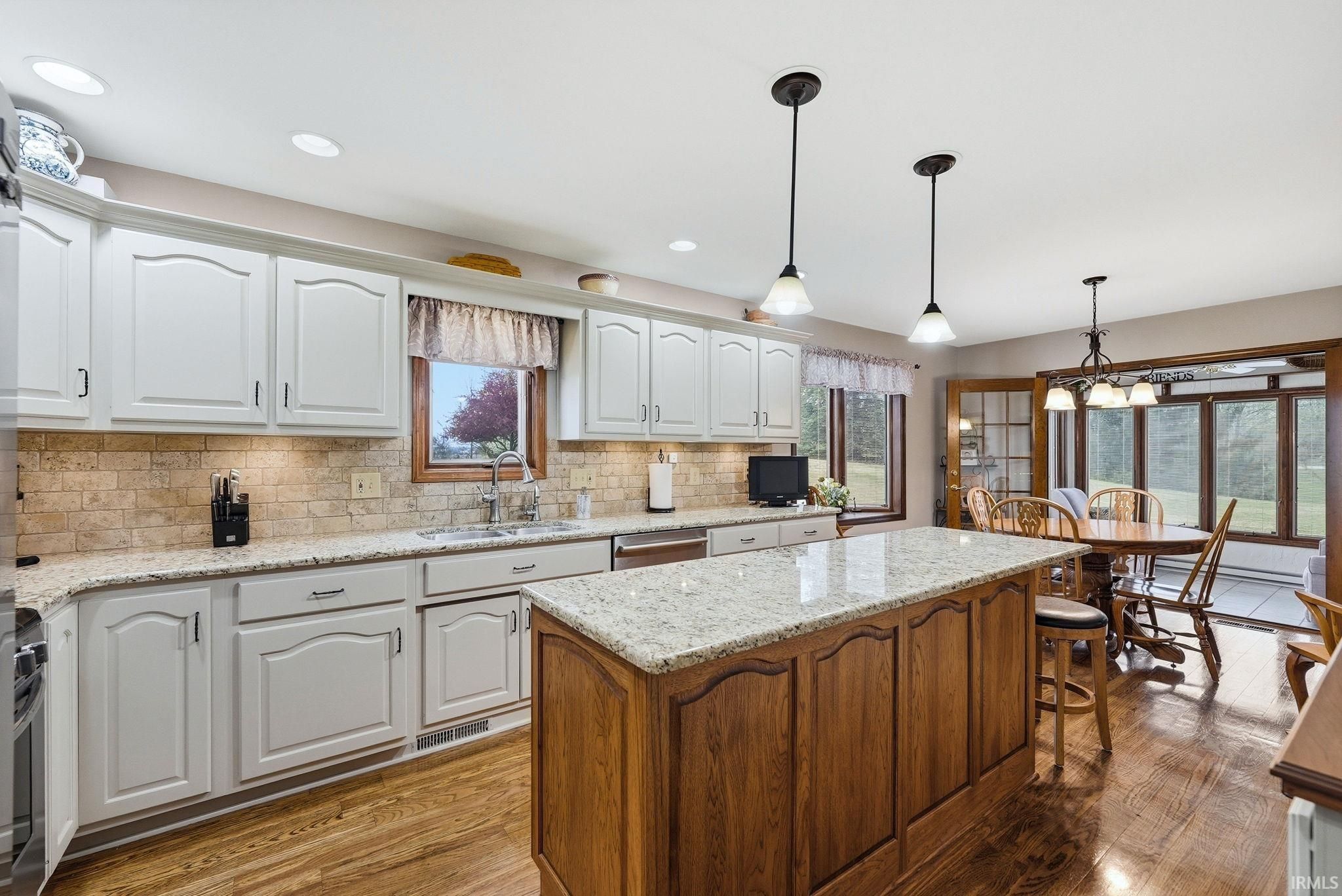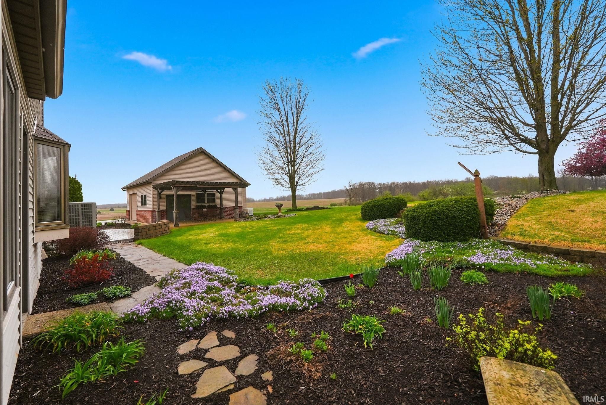 Set on 12 beautifully maintained acres in DeKalb County, this property offers a serene setting that's hard to find. A private pond with pier creates a natural centerpiece, inviting you to sit and take it all in, while a cozy cabin tucked just beyond the water adds a sense of privacy and intention to the landscape. The home is positioned to take full advantage of its surroundings, with composite deck and pergola designed for gathering or simply slowing down. Inside, you’ll find an updated kitchen with granite countertops, a four season room, and a finished basement with mini bar—offering flexible space for everyday living. The heated and cooled outbuilding includes a kitchenette, half bath, and walk-up floored attic. This stunning property is a must see!