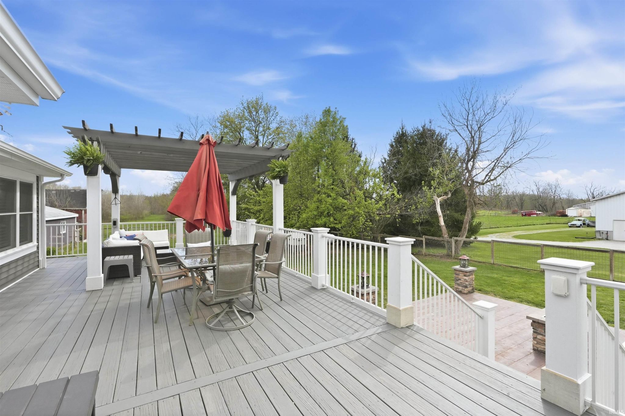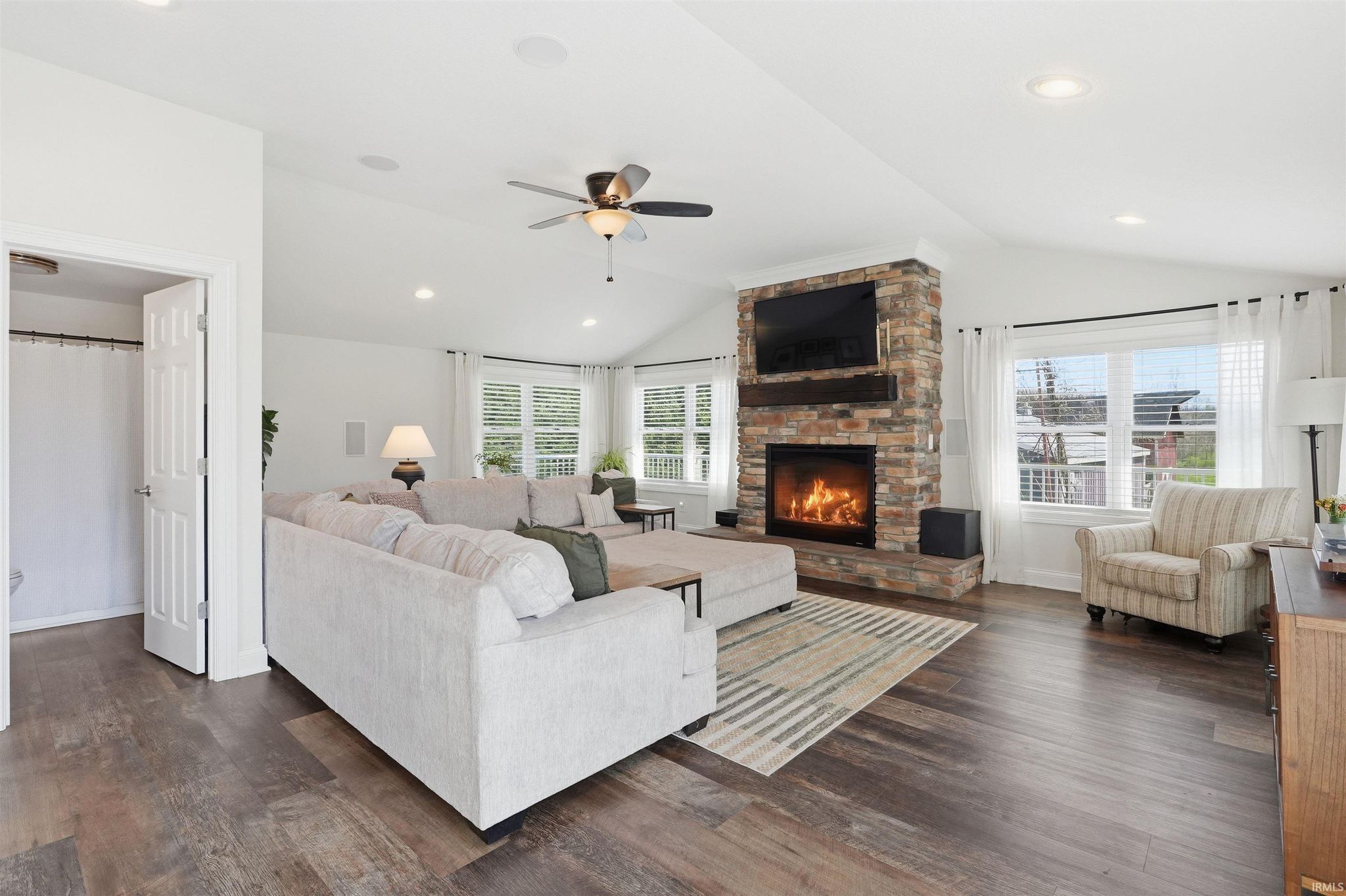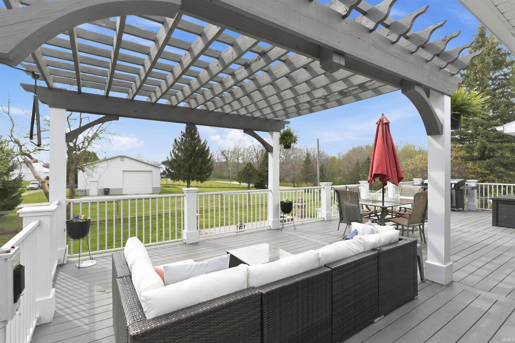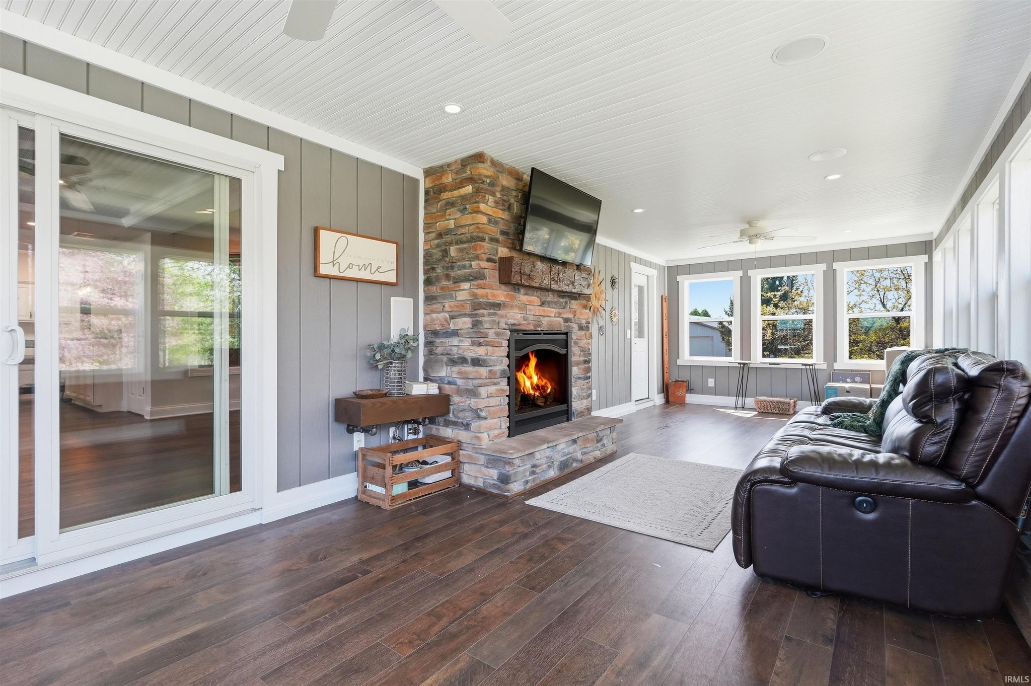 Welcome to this beautifully maintained and thoughtfully updated 4 bedroom, 3 full bath home in the heart of Churubusco, offering the perfect blend of space, comfort, and functionality both inside and out. Situated on nearly an acre, this property provides room to spread out, relax, and enjoy peaceful surroundings while still being conveniently located close to major thoroughfares for an easy commute. Inside, you’ll find fresh paint throughout and a warm, inviting layout designed for everyday living and entertaining. The spacious great room is filled with an abundance of natural light and anchored by a stunning floor-to-ceiling stone fireplace, creating a cozy yet impressive focal point. The home continues to shine with bright, light-filled spaces throughout, enhancing the open and welcoming feel. One of the standout features is the oversized all-seasons porch, complete with its own floor-to-ceiling stone fireplace, offering additional year-round living space and the perfect spot to unwind or host guests. The kitchen is complemented by a large pantry, providing excellent storage and functionality for daily living. The home offers four generously sized bedrooms and three full bathrooms, including a beautifully appointed primary suite featuring a walk-in tile shower for a spa-like experience. A partially finished basement adds even more usable space for recreation, hobbies, or storage. Multiple beautiful porch entries add charm and character while creating a seamless connection between indoor and outdoor living. Major mechanical updates have already been taken care of, including a newer furnace and central air system as well as a new well pump, offering added peace of mind. Step outside to enjoy the elegant wrap-around deck complete with a built-in gas fire pit, ideal for entertaining or relaxing evenings at home. The property also includes two outbuildings, with one equipped with electricity and water, providing excellent options for storage, workshop space, or additional hobbies. With its combination of updates, stunning features, natural light, space, and unique amenities, this property offers a rare opportunity to enjoy country-style living with modern comforts.