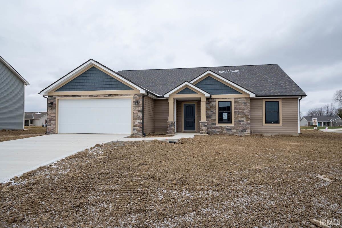 Beautiful new ranch home on a cul-de-sac street in Markle. This split bedroom layout is open and spacious. The great room has large windows for natural light. The kitchen has custom cabinets. The kitchen also has an angled island with breakfast bar, pantry and stainless steel gas range, dishwasher and microwave. Just off the kitchen is a sunroom or quiet space for a den. The master suite has a private entry and the bathroom offers a double sink vanity, linen closet and 5' wide shower.