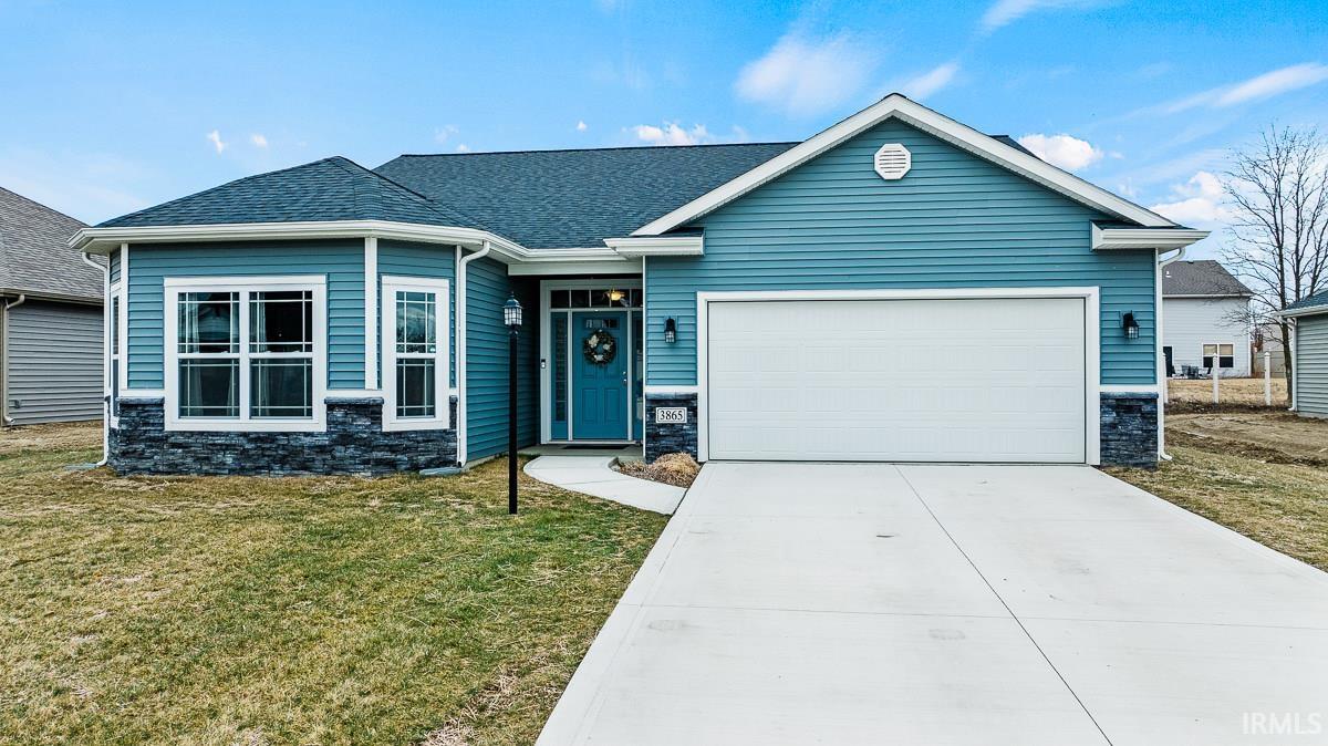 Open House 2/19/2023 with Toms Coffee Truck! Enjoy the peace of mind of new construction without the wait or hassle of growing grass. This completed home with curtains and custom blinds is a 2021 Bellagio floor plan by Lancia Homes. This home is a 3 bed 2 full bath split ranch with 9 ft ceilings. The kitchen has newer appliances, tasteful backsplash, and a beautiful upgraded island with a breakfast bar. Leading from the kitchen sits a nook for more formal dinning options with natural light coming from the sliding patio doors. The great room features a direct-vent gas log fireplace with ceramic tile surround. Enjoy the large Walk-in closet, 5' Shower, dual sink vanity with soft close drawers and cabinets, all with in the main bedroom. The 3rd Bedroom features bayed windows, could be a great office space. Laundry room off the garage with ample storage. This home is still under a 10yr builder warranty.