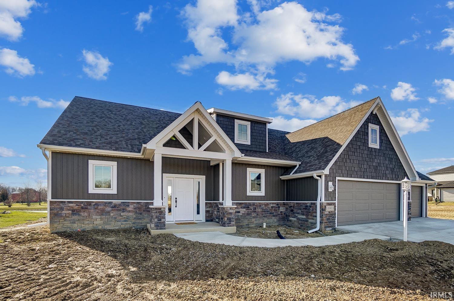 Brand New Bob Buescher hand-crafted two-story home located in Northwest Allen County with a 1 year builder warranty. Our home layout will absolutely delight you! From the moment you enter the foyer, you will be captivated by the homes' visible quality, unique features, custom craftsmanship, and open layout. The main level features a 10 ft high ceiling throughout the first floor, along with opulent glass windows, which provide an abundance natural light and beautiful water views. The stylish kitchen has plenty of workspace and includes custom cabinets by Zehr Cabinetry, a large 5x7 quartz island, and oversized walk-in pantry. Open to the kitchen and dining area is a beautifully laid out great room with an amazing fireplace, crown molding, and the perfect amount of living space. You will also find the primary bedroom suite located on the main level. This main level en-suite provides a luxurious spa-like bathroom, displaying a cultured marble double vanity, custom tiled walk-in shower, and oversized walk-in closet. As you head upstairs, you’ll appreciate the large amount of bonus space, along with three generously sized bedrooms and a shared bathroom. Storage abounds with direct attic access from bonus area, and an oversized 812 sq ft 3 car garage. Enjoy entertaining or relaxing on your covered porch in the serene community of Sage Pointe, tucked away off of Tonkel Road, yet minutes from Parkview North, Interstate 69, shopping, restaurants, and local venues.