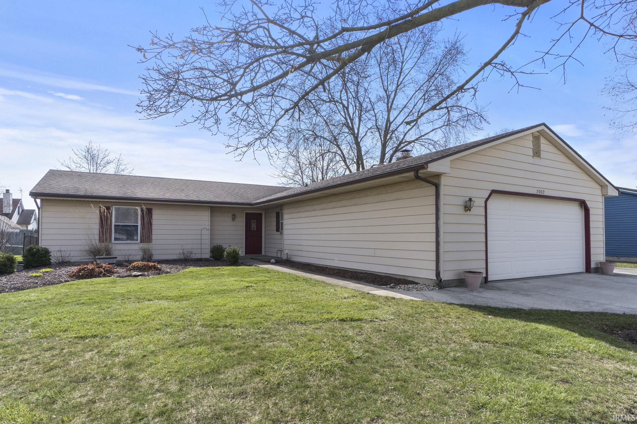 1348 Sq-Ft ranch with 3 bedrooms, 2 full baths and a big 2-car garage with extra space. The home has a New Haven address, but the Shordon Estates neighborhood is in the Snider High School district. The home has 2 living spaces, a living room, and a family room. The family room has a wood burning brick fireplace and a sliding door to the patio. The kitchen is open to the dining area and the family room. The back yard has a nice big patio (pre-wired for a hot tub), a full chain link fence, a big shed and a playset that is included. All the kitchen and laundry appliances are included. The master bath was professionally remodeled in 2022. Dishwasher new in 2022. The furnace was new in 2015.
