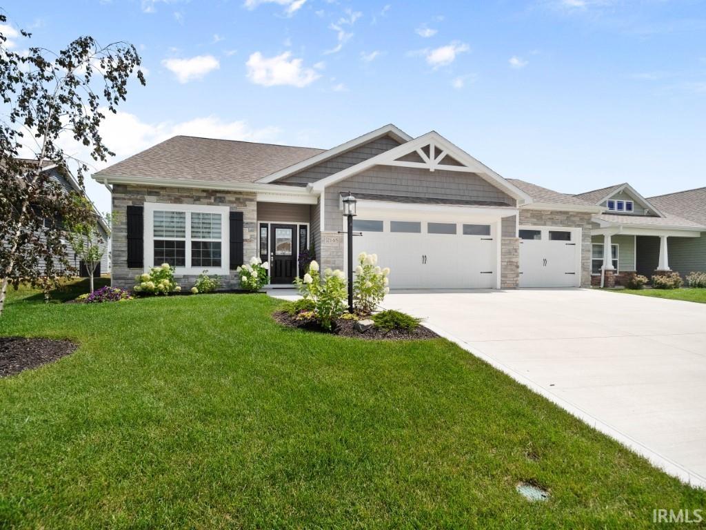 Welcome to this exquisite 3-bedroom, 2-full bath ranch nestled within the serene landscapes of Cottages of Catania. Built by Majestic Homes, this remarkable Merlot model is a true embodiment of luxury living, boasting an array of top-tier upgrades and features that redefine comfort and elegance. As you step onto the property, you're greeted by a covered front porch that sets the tone for the refined interior that lies ahead. The inviting foyer beckons you to explore the meticulously designed spaces within. The versatile den, which could easily serve as a third bedroom, boasts elegant glass French doors and generous closet space, providing both functionality and style. Enter the great room, where a soaring cathedral ceiling creates an air of grandeur, perfectly complemented by the corner stone gas log fireplace, complete with a bespoke custom mantle. The heart of the home is the chef's island kitchen, adorned with high-end Frigidaire appliances, custom cabinets with glass doors and a wine rack, and a chic tile backsplash that adds a touch of sophistication. The breakfast bar invites casual gatherings, while the adjacent dining area offers panoramic views of the lush surroundings, extending to the four-season room—an oasis of relaxation with its tranquil pond vistas. The master suite is a haven of luxury, featuring a trey ceiling that adds dimension to the space, and a sliding barn door that leads to the well-appointed master bath. Revel in the opulence of double vanities, a walk-in tile shower, and a generously sized closet equipped with innovative closet tamers. The split bedroom concept places the second bedroom next to the den, allowing for privacy and convenience. This bedroom shares the main full bath, which continues the theme of elegance and functionality. This residence exudes a sense of refined living with its custom-made window treatments, hardwood floors, and upgraded faucets throughout. The extra-large laundry room is a testament to both form and function, boasting custom cabinets with drawers and a sink for added convenience. Step outside to find two inviting patios—the first covered and overlooking the picturesque pond, offering a serene backdrop for outdoor relaxation and entertaining. Professionally decorated and impeccably maintained and ready to welcome its new owner to a life of unparalleled luxury. Schedule your showing today!. Your dream home awaits!