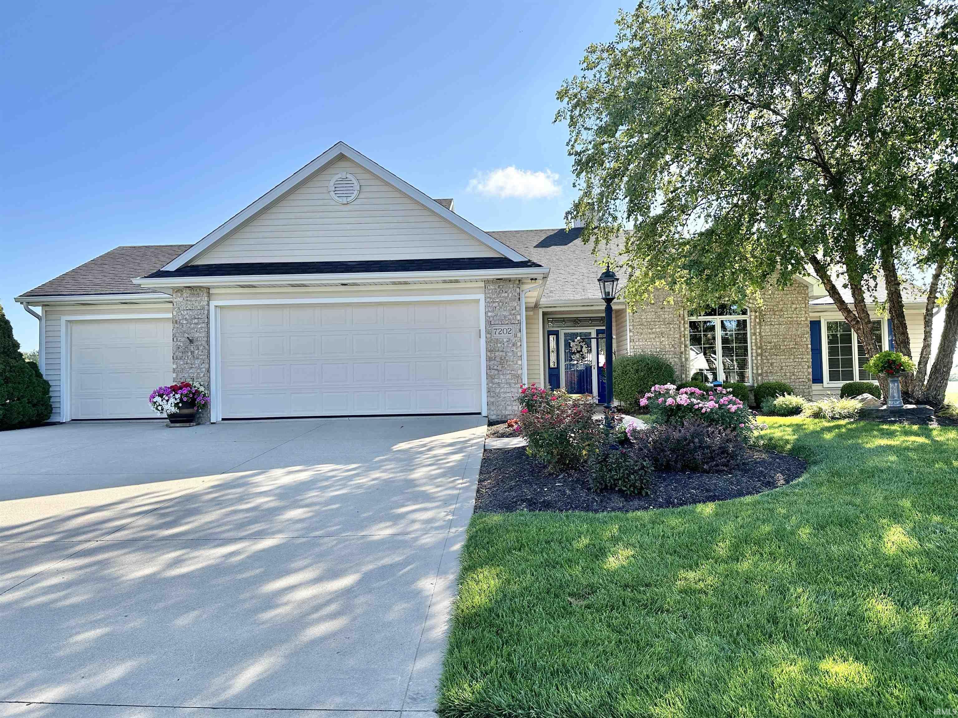OFFER RECEIVED. All offers due 9/28/2023 by 6PM. You will love this Cherry Hill Villa, on the Golf Course, built by Delagrange, featuring 1868 S.F. plus the 3-Season Porch, 3 Bedrooms, 2 Full Baths, separate Laundry Room w/sink, Spacious Great Room with Gas Log Fireplace, remote controlled, Transom Windows and a Large Dining Area with fabulous Golf Course Views. NEW ROOF, GUTTERS & DOWNSPOUTS installed last week! White Painted Cabinets with Gorgeous Granite Countertops with lovely undermount composite sink and Eating Bar. The Primary Bedroom features a tray ceiling w/fan and adjacent bath with Tiled Walk-in Shower, Twin Sink Vanity, a private toilet area & a walk-in Closet with white laminate closet system. Ceramic Tile Flooring in foyer, kitchen, dining, laundry & Bathrooms. 3-Car Garage offering a divided off 3rd bay w/heater for a workshop and a permanent stairway to a floored attic. Simplisafe Security System & smart thermostat. Overlooks the 8th Tee & fairway & the #7 Green. Only 2 miles to 469 to get wherever you want to go quickly & easily. 5 minutes to Meijer, Menards, Walmart & restaurants like Applebee's & Cracker Barrel.
