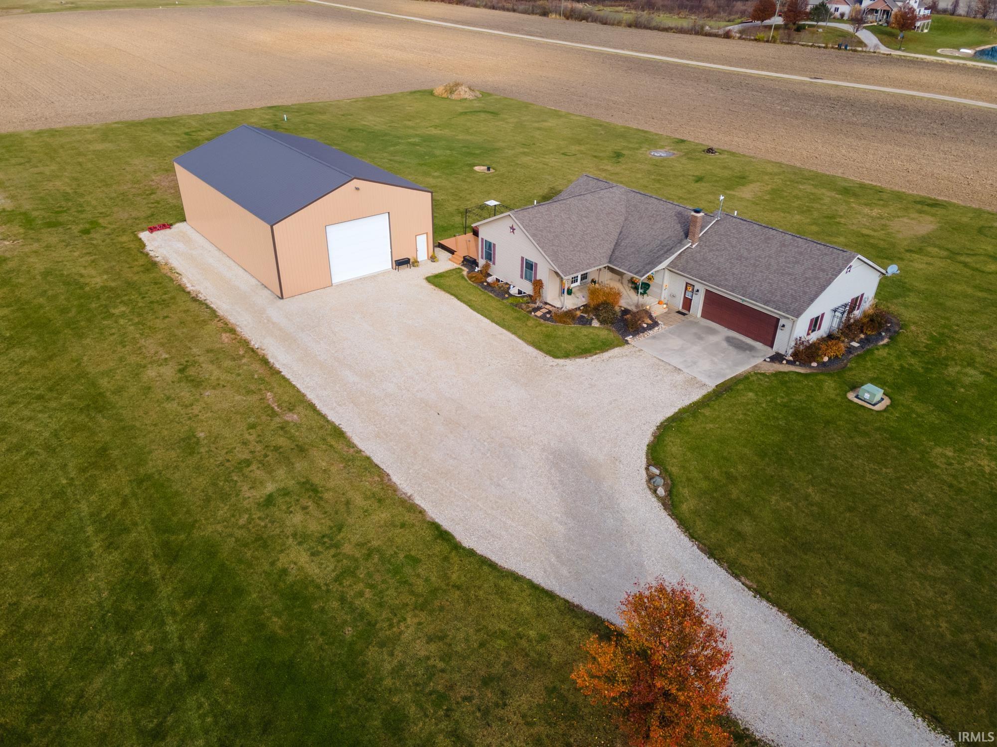 **Open House December 2nd, 1-3pm** This spacious home combines quality craftsmanship with good country living, right on the outskirts of Southern Decatur, IN. Located on over 5 acres, this 3,144 SQFT home offers privacy and proximity. This property includes a large 40x60 pole barn with 16ft ceilings and an overhead door. As you enter the home, you're greeted by the warm sunlight coming from the skylight on high vaulted ceilings in the dining room. The cozy living room offers a beautiful wood burning fireplace perfect for family time in the winter. The home includes LVP, an option to rent 2 acres to a farmer, a brand-new 2022 geothermal furnace, and a fully finished basement with a couple rooms perfect for a home office, a man cave, or a game room, etc... There is a new electric water heater purchased in July of 2023 and a built in deck hot tub. You do NOT want to miss out on this gorgeous move-in ready home!!